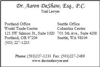 Dr. Aaron DeShaw, Esq. PC: a Portland law firm where our lead lawyer, is both a doctor and a lawyer. The combination allows our firm to fully understand the wide variety of health problems that can result from an injury.